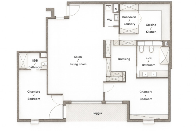 - Large living room opening onto a loggia