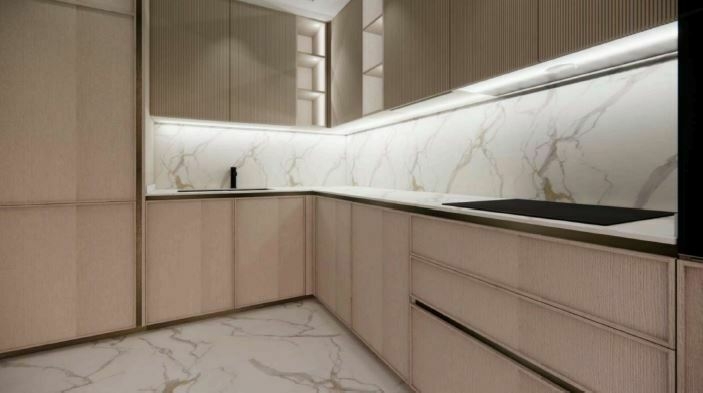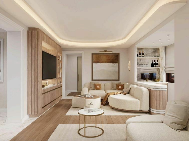 It features high-end materials such as marble, parquet, and custommade Italian furniture. The residence offers three spacious bedrooms with en-suite bathrooms and walk-in wardrobes, a bright double living/dining area with a stylish bar, and a large terrace overlooking the sea and the Casino.
