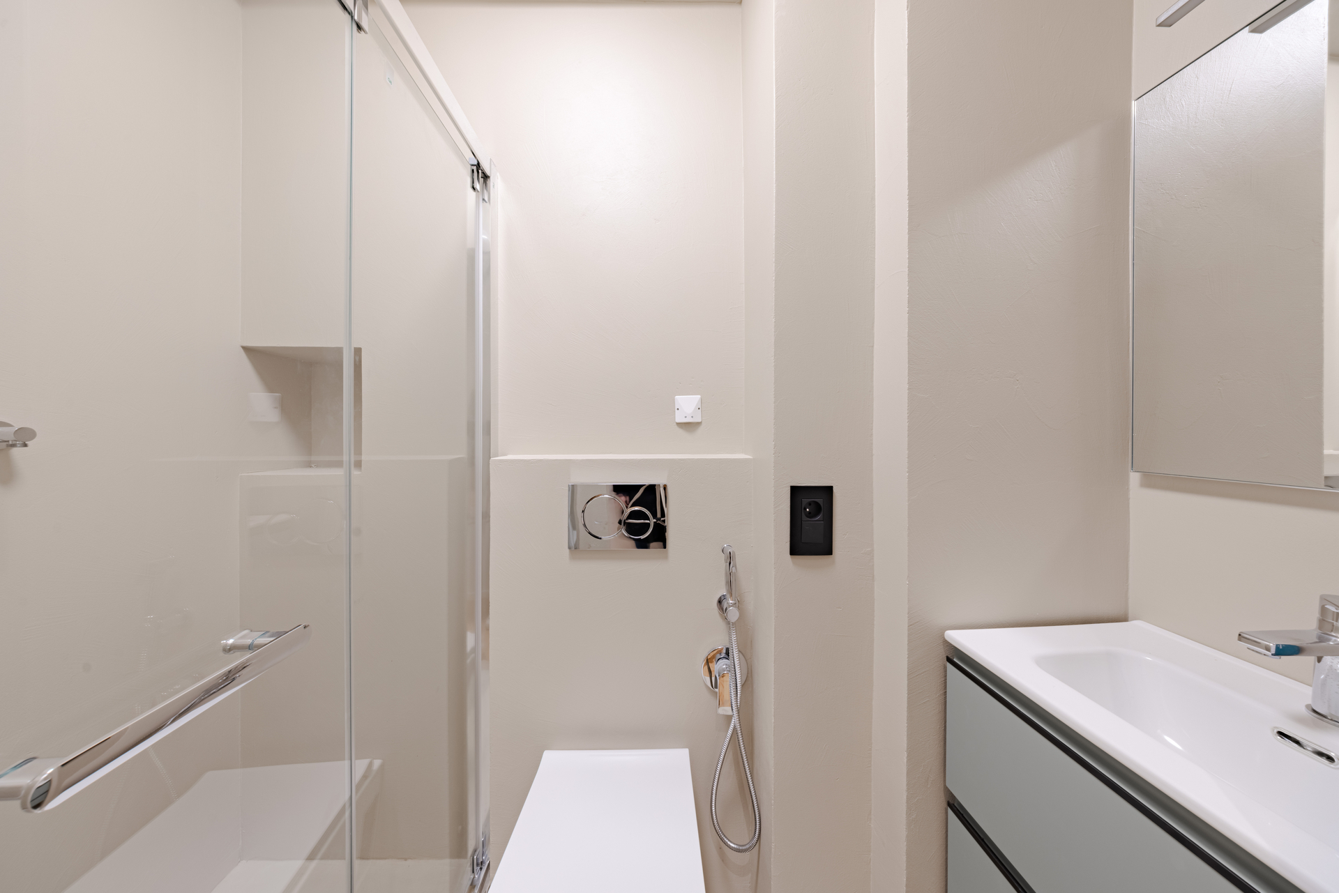 An elegant bathroom with refined finishes.