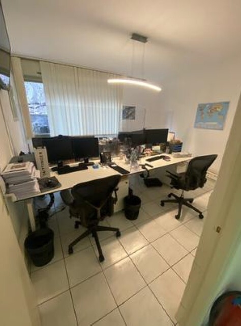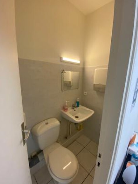 This office for sale consists of: an entrance hall, three offices, guest toilets, and a shower room with a toilet.